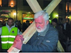 Padre Fedele Bisceglia, il frate francescano rinviato a giudizio con l’accusa di violenza sessuale nei confronti di una suora, sabato sera, con una grossa croce di legno in spalla, ha attraversato il centro di Cosenza per ribadire la sua innocenza.